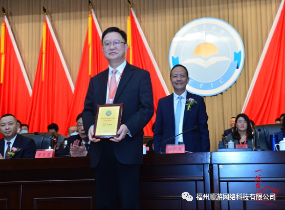 台江区委副书记、区长刘广辉为新当选区工商联主席(会长)的吴根茂授牌